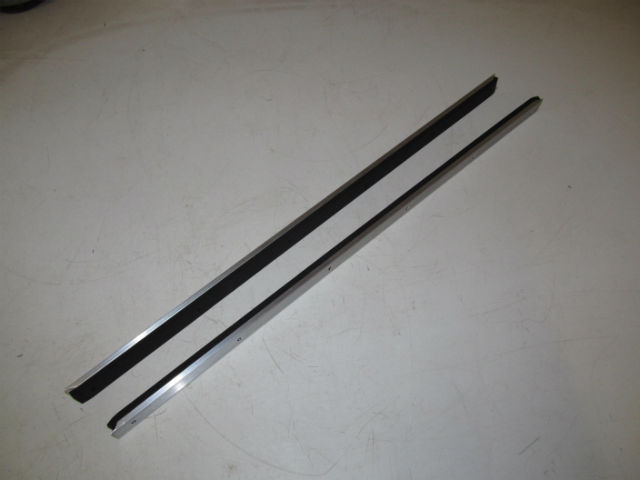 This is a front window divider kit for 1955-1958 Spartans which have just one large opening for the 3 front or sometimes rear windows (double ender models). This kit includes 2 aluminum dividers with foam seals, 6- bolts & nuts and acorn nuts. This kit is almost exactly like the original ones with one exception. In order for the foam seal to pull down tight we had to use bolts with nuts verses the one side of the aluminum strip being tapped with threads in the aluminum. By doing it this way you can get them nice and tight so they will not leak. These dividers go between the curved windows and the center window. This is just for 1 side. If you need both sides, you will have to order 2 kits.