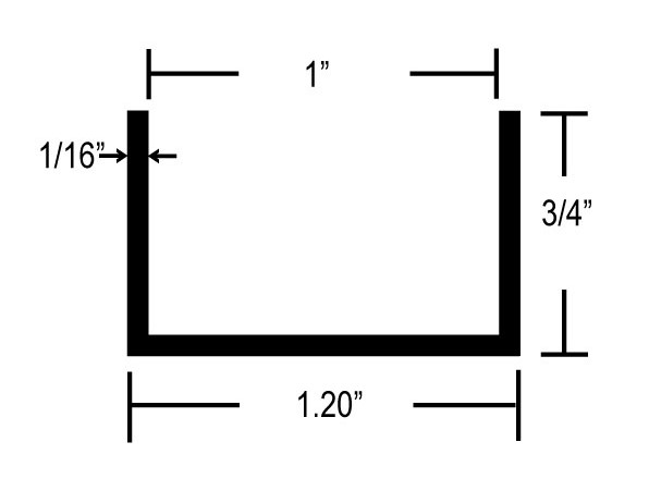 Mill finished Aluminum u-channel is used on hinge side of entry door when using our part #CHW138 (Aluminum Door Extrusion) to custom build a entry door for your trailer. This channel comes pre-cut in 6 foot lengths. Measurements; 3/4"leg x 1.20"OD x 1"ID . Wall thickness is 1/16".