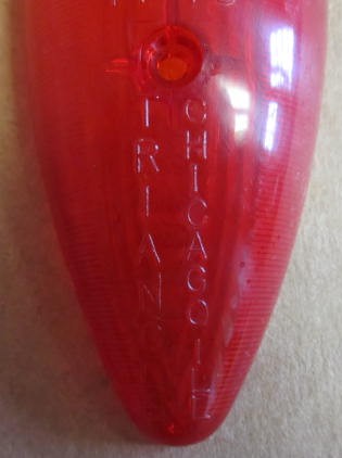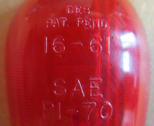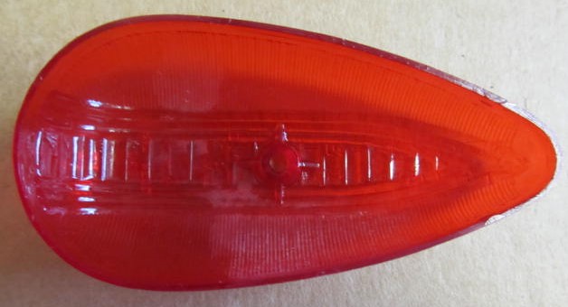 Red Tear Drop Marker Light. Lens Only. Has 16-61 SAE PI-70 TRIANGLE CHICAGO ILL imprinted on the lens. This item is New Old Stock so may have some minor scuffs or scratches.