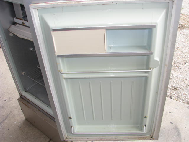 Refrigerator overall is in pretty good shape. The door liner has a few cracks on the inside of the door. The freezer door is broken. Has been tested at 70 degrees ambient, 20 degrees top and 30 degrees bottom on gas. 74 degrees Ambient, 20 degrees top and 40 degrees bottom on electric.