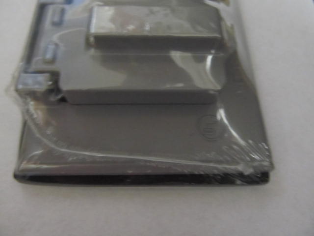 Horizontal mount, Duplex, all weather cast aluminum outlet box cover painted grey.