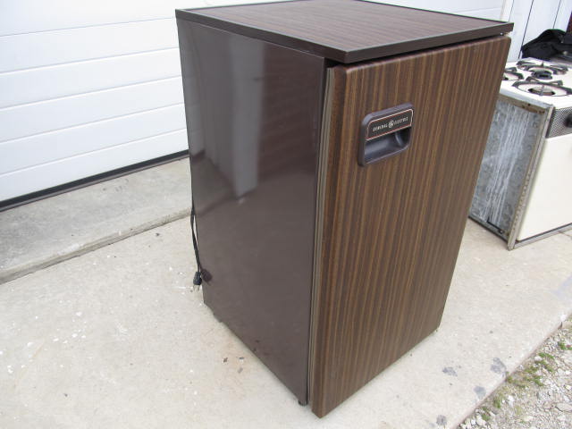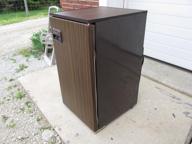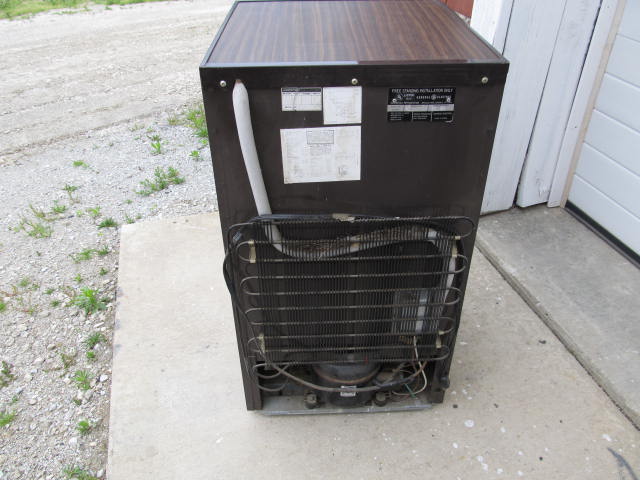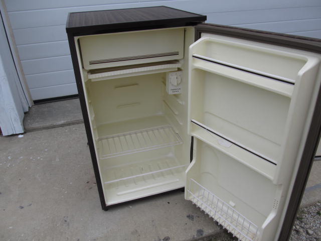 The door seal will need to be refastened. It cools and with an ambient temperature of 60 degrees, bottom 24 degrees, and top 4 degrees. Overall in good shape. Electric only.
