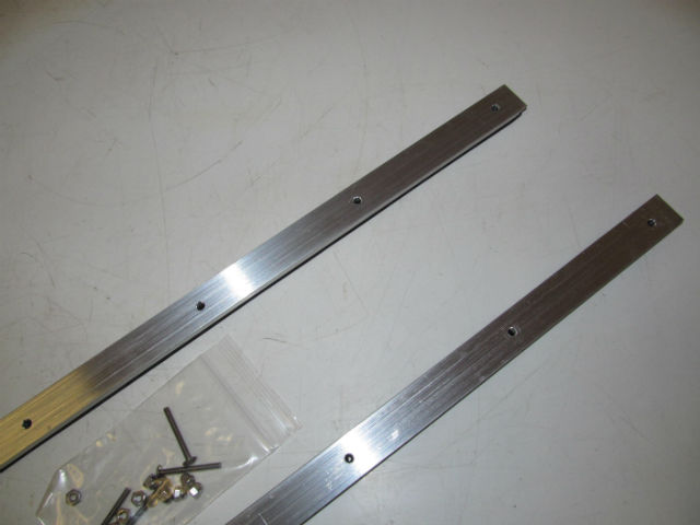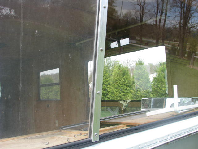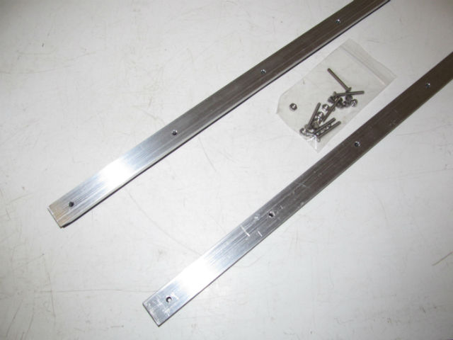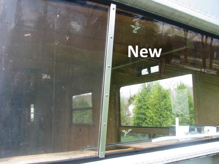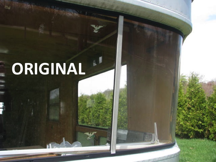 This is a front window divider kit for 1955-1958 Spartans which have just one large opening for the 3 front or sometimes rear windows (double ender models). This kit includes 2 aluminum dividers with foam seals, 6- bolts & nuts and acorn nuts. This kit is almost exactly like the original ones with one exception. In order for the foam seal to pull down tight we had to use bolts with nuts verses the one side of the aluminum strip being tapped with threads in the aluminum. By doing it this way you can get them nice and tight so they will not leak. These dividers go between the curved windows and the center window. This is just for 1 side. If you need both sides, you will have to order 2 kits.