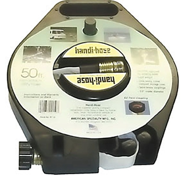 Internally bonded construction means added life and extra value in every Handi-Hose for your customers. Handi-Hose bonded water hose is durable, withstanding pressures over 450 PSI. Absolutely safe for drinking water systems. Handi-Hose meets all NSF standards. Durable construction and materials means Handi-Hose is highly resistant to abrasion, oil, sun and salt, and remains flexible and tough in all weather. Self squeegee system built into the Handi-Hose & Reel unit drains water and puts an end to the dry storage problems of conventional garden hose. 25´ handi-hose