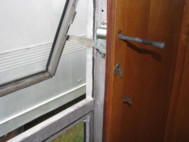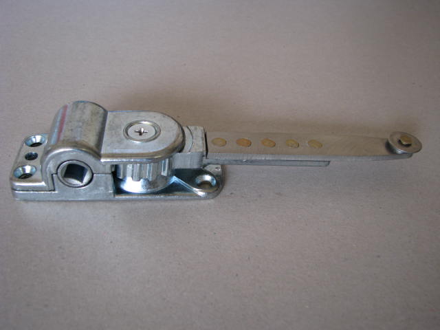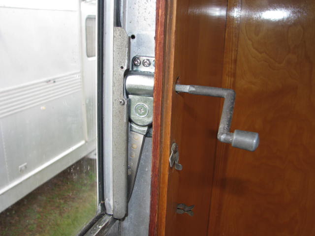 This is a retro-fit window crank. It is not exactly like the original one but is the best we could come up with. This crank only allows the window to be opened approximately half way but this is still plenty to let fresh air in. You can normally use the same hole in your wood frame for the crank handle to go through but you have to add new holes for the crank to mount in the aluminum window jamb. The channel which is screwed to the window frame, which the roller slides into, must be slighted modified. (see photos) About 1" of this channel needs to be ground down approx. 1/8" so that it will clear the window crank when the window is tightly closed. The tolerences are real tight, so putting spacers/washers under the crank mechanism may need to be done for the crank out arm to clear everything.