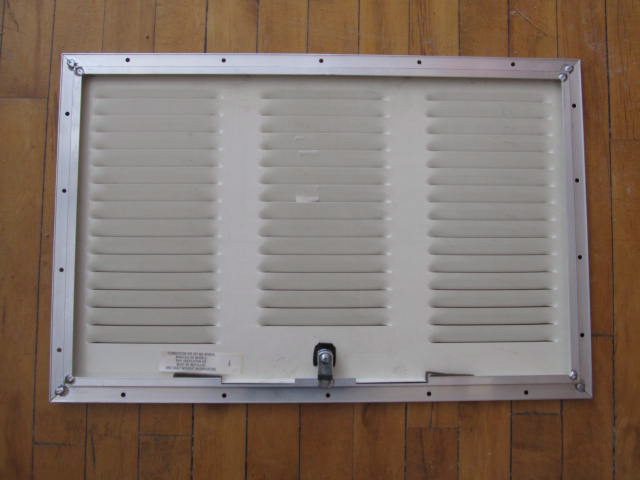 Cut out is 14"x 22". For use with most refrigerators. Comes in Colonial White but looks more Beige. Has a mill finish frame.