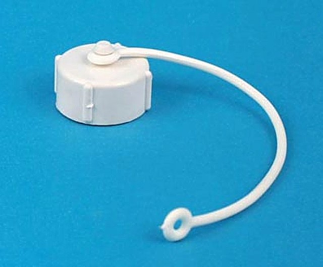 3/4" Female Garden Hose Cap with attached lanyard in Polar White. Bulk.