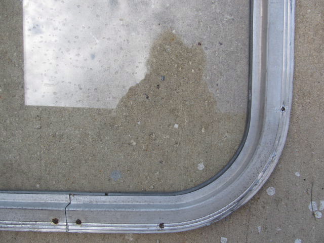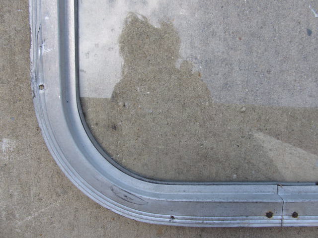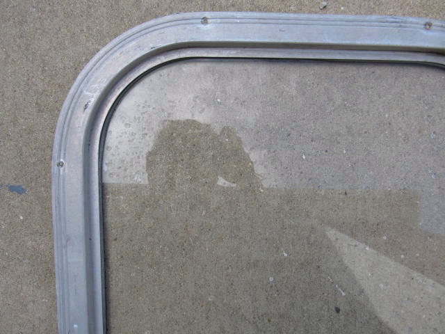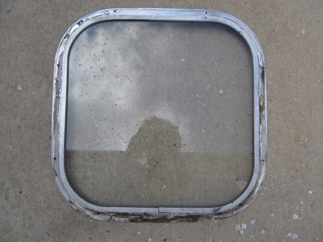 17” x 17” rough opening aluminum window. Glass and frame are in good shape. It has original seals that may need replaced. This window could be used to replace an entry door window. . It comes with the interior garnish that is not in the photo. The interior garnish is in decent shape but has minor surface rust/stains. Windows may vary from photos but are in comparable condition.