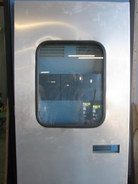 We are now custom building Spartan entry doors for late 1953 thru 1958 model Spartan trailers. After 57+ years in service many of the Spartan entry doors are either all beat up, just plain worn out or possibly missing. These doors will be built very close to the original ones only better. We will be using .040 aluminum instead of the .032 which was originally used. We are adding a rigid foam insulation core for better R-value and more rigidity. We are adding extra internal aluminum supports for added strength and durability. Instead of a single panel of glass for the window, we will be using an inner and outer glass panel for better insulating value and less condensation. The window will not recess in like the original one but each panal will be flush with the aluminum exterior of the door. The windows will be available in round (1953-1955) or rectangles (1955-1958). We will be offering 28” x 73” and 24” x 73” in either right hand or left hand configurations. The doors will be set up for the original Bargman brand L-66 lock but will not come with a lock or a hinge but we do have custom made hinges available. If your old door has a good L-66 lock it can be swapped over to the new door as well as the hinge. These doors are custom made and may have a 2-4 week lead time for production. Aluminum skin of door may have small scratches due to manufacturing process. Please call us at 765-473-8088 to place an order for one of these doors. These are custom made doors and are not returnable so we want to make sure you are getting exactly what you need.