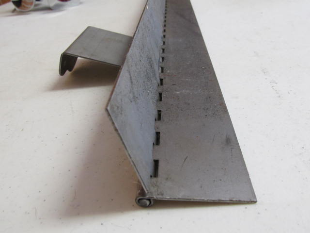 This is a 72" long reproduction Steel Door Hinge for a late 1953-1958 Spartans. This hinge can probably be made to work for several other brands of trailers but some modification may be neccessary. It has the hinge set-up for both the entry door and the screen door. The depth of the screen door brackets are approx. 3-1/8". The length of this hinge can be cut down to a minimum of 61-1/2" and still possibly work for other applications besides the Spartan doors. There are no pre drilled holes so you will need to drill the holes to match your door and door jamb. It does NOT have a finish or paint on it. There may be small scratches in steel from manufacturing process.