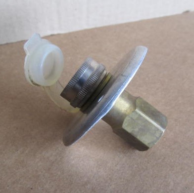 City water inlet with aluminum mounting plate and clear plastic strap. Overall flange width of 2 7/8". Cutout hole needs to be 1". This has a 3/4" female garden hose connection on the one end and a 1/2" FPT connection on the other end. Surface mount water fill with backflow preventer. Chrome finish. This item can not be sold in CA or VT because of there lead law.