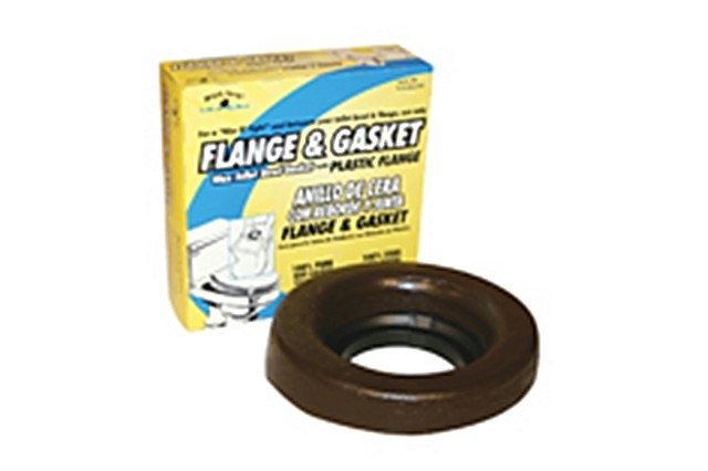 Sleeve and seal ring are formed into one piece. Seals off seepage of water and can be used on almost any toilet. Extends short horn bowls.