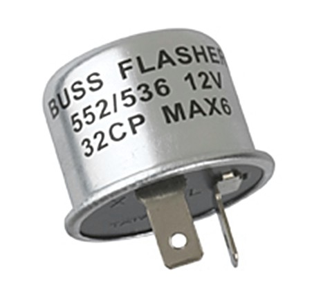 12 volt / 2-Term Flasher Heavy duty 12V/2-terminal. D.O.T. approved to flash 2-3 32 candlepower turn signal lamps. 2-6 hazard warning lamps