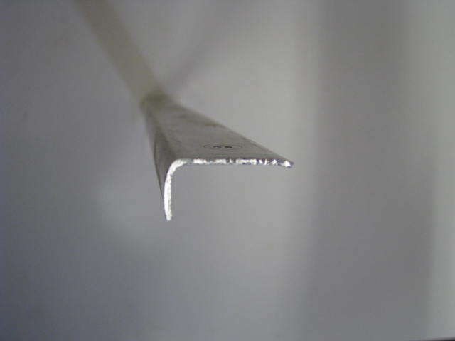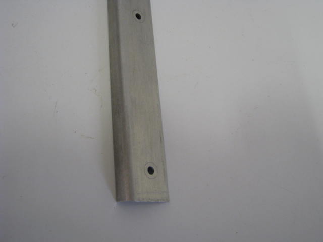 16 feet L-shaped corner trim made from .050 extruded mill finish aluminum. Long leg is .940" OD and has 5/32" diameter holes punched every 3-7/16". Shorter leg is .478" OD. THIS MOLDING HAS BEEN DISCONTINUED.