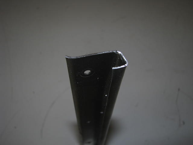 16 feet J-shaped drip rail made from .040 extruded mill finish aluminum. Long leg is 1.122" OD and has 5/32" diameter holes punched every 3-1/2". Short leg is .487" OD and is rolled up on edge to form the J-shape.