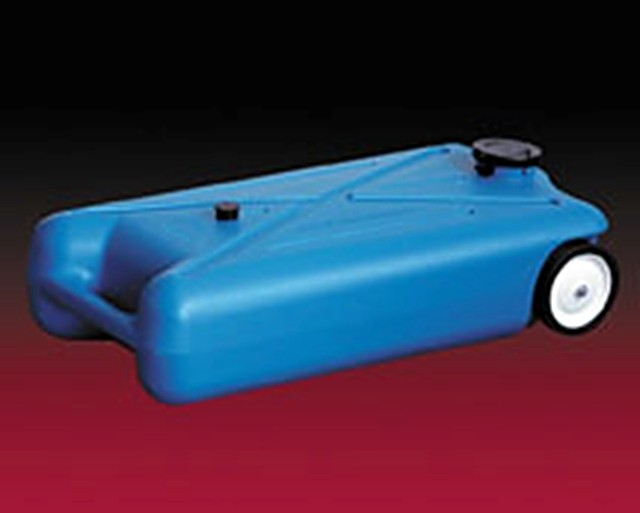 Tote-Along is the original portable drain water tank. Constructed of blue polyethylene, it includes a convenient 3" bayonet style vented cap with 3/4" hose outlet, 3" bayonet style sewer hose adapter, large diameter wheels for easy handling and a special hitch ball towing bracket.
